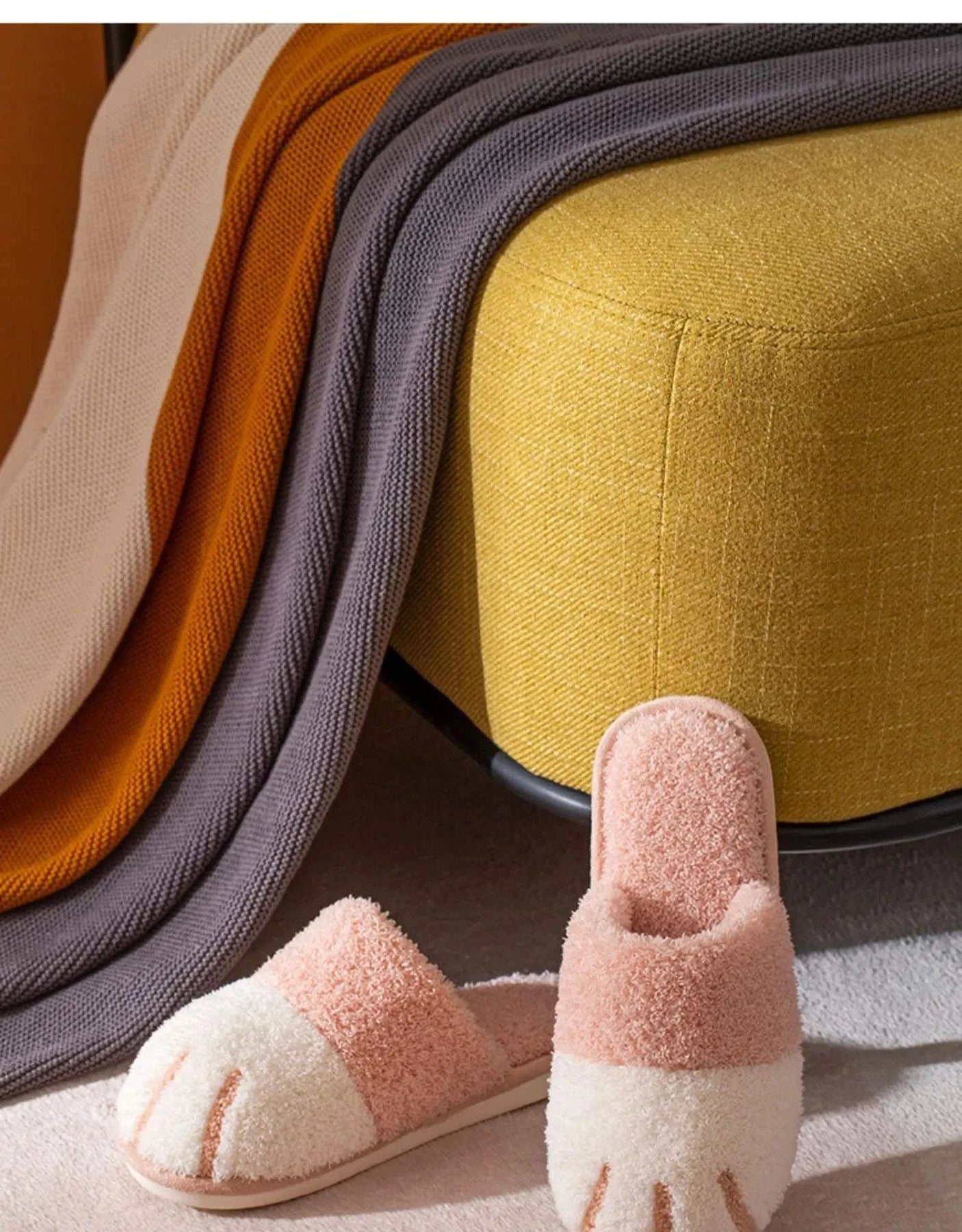 Embrace cozy comfort with these uniquely designed plush slippers, featuring an adorable cat paw motif. Crafted for warmth and style, they are perfect for lounging at home or gifting to a loved one