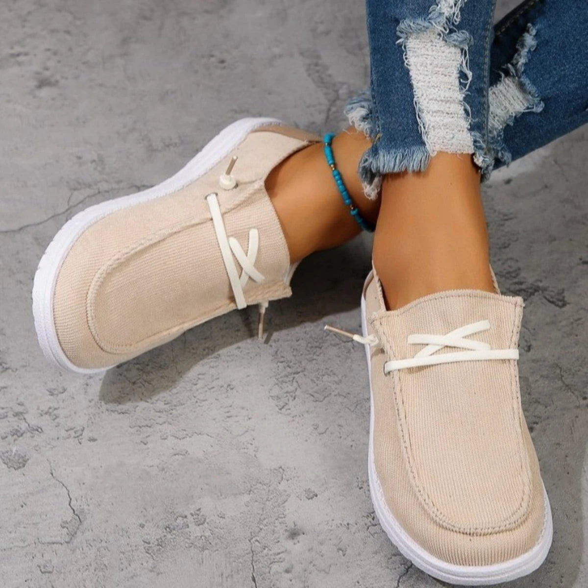Step into effortless style and comfort this summer with BFCCQB women’s casual loafers. Crafted from breathable canvas with a soft fabric lining, these flats keep your feet cool and comfortable all day long. The classic round toe and elegant cross-tied lace-up design add a chic, modern touch that’s perfect for any casual occasion.